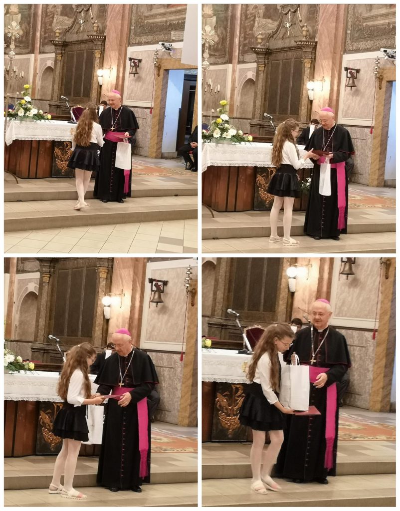 Berze Rozi, a IV. Béla Katolikus Általános Iskola és AMI 5.b osztályos tanulója kitüntetésben részesült a Te Deum-on! A Magyar Katolikus Püspöki Konferencia „A család Istentől rendelt közösség” címmel vers-és novella-író pályázatot hirdetett. Az Egri Főegyházmegye területéről beérkezett pályaművek értékelése alapján 10-14 éves korosztály, vers kategóriában Rozi 1. helyezést ért el „Könyörgés Máriához” című versével.
