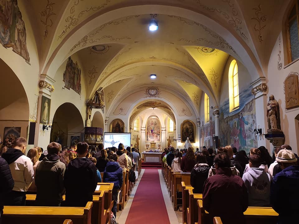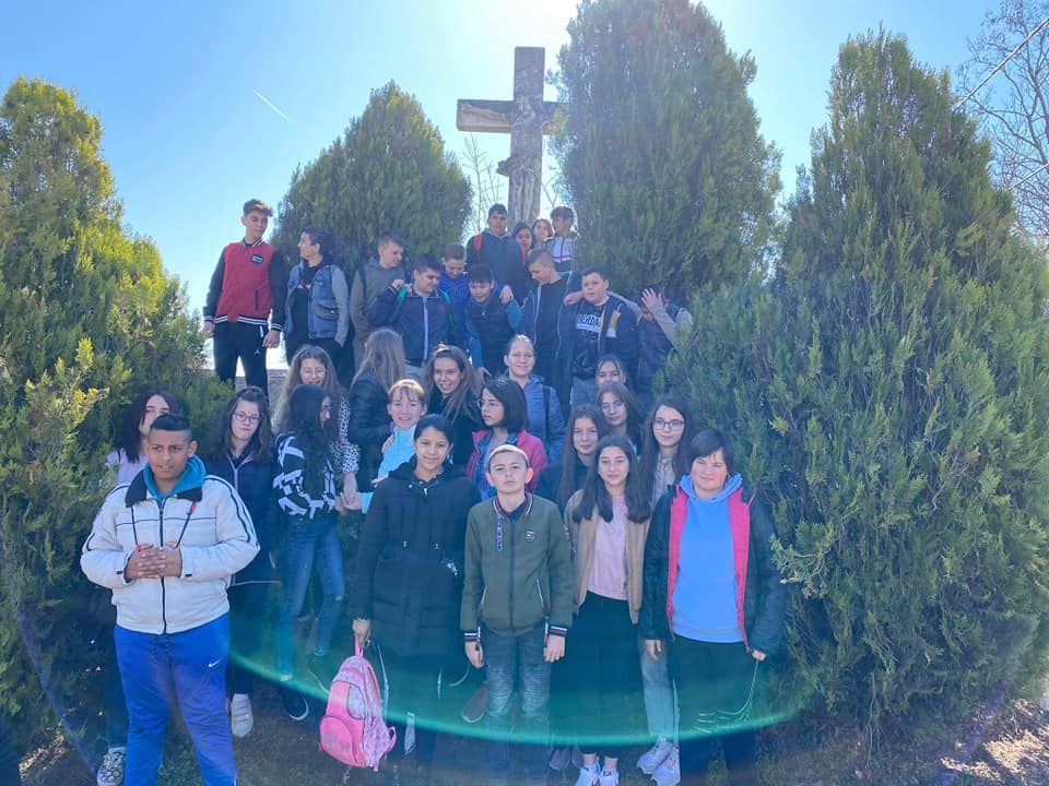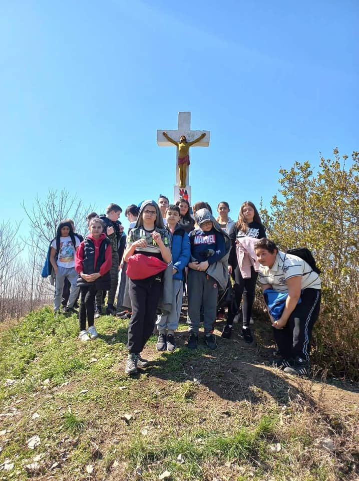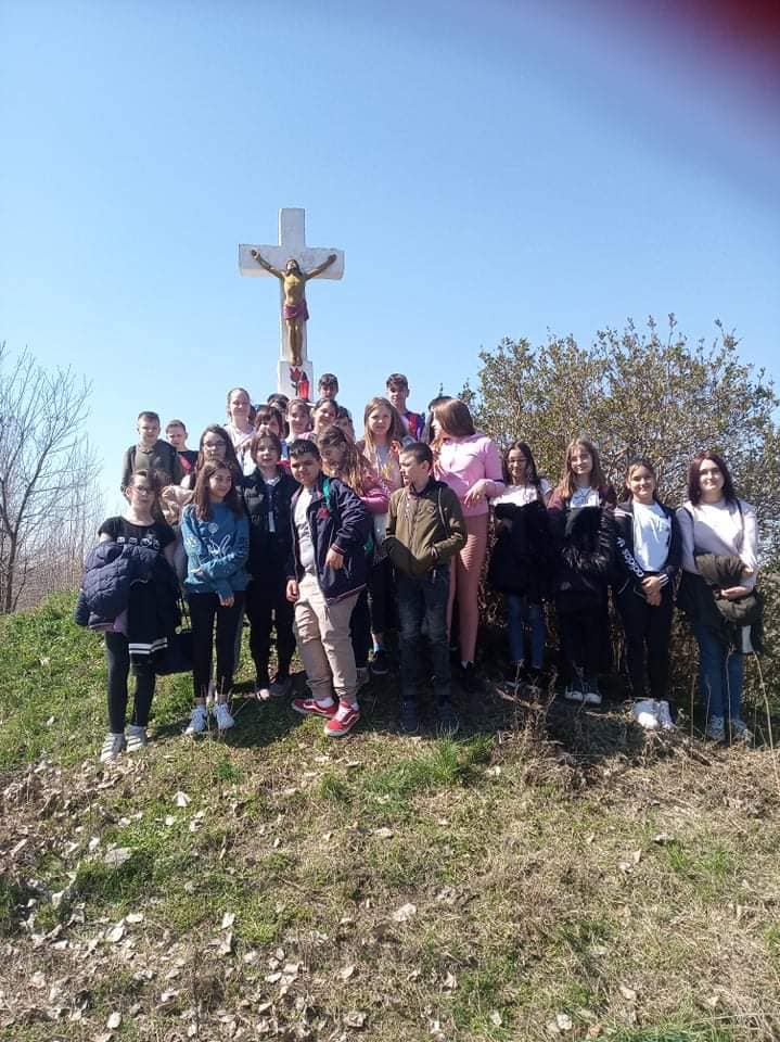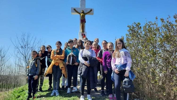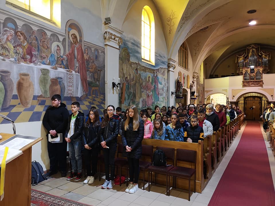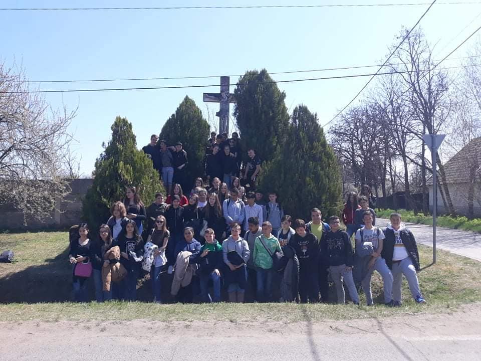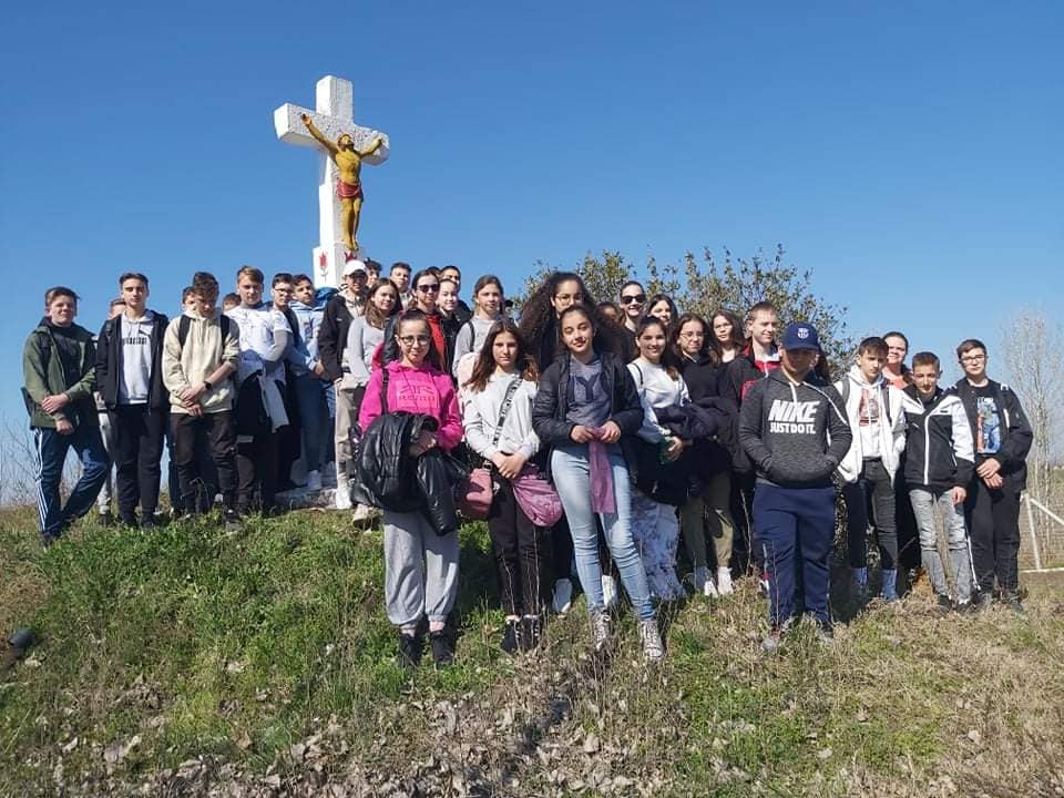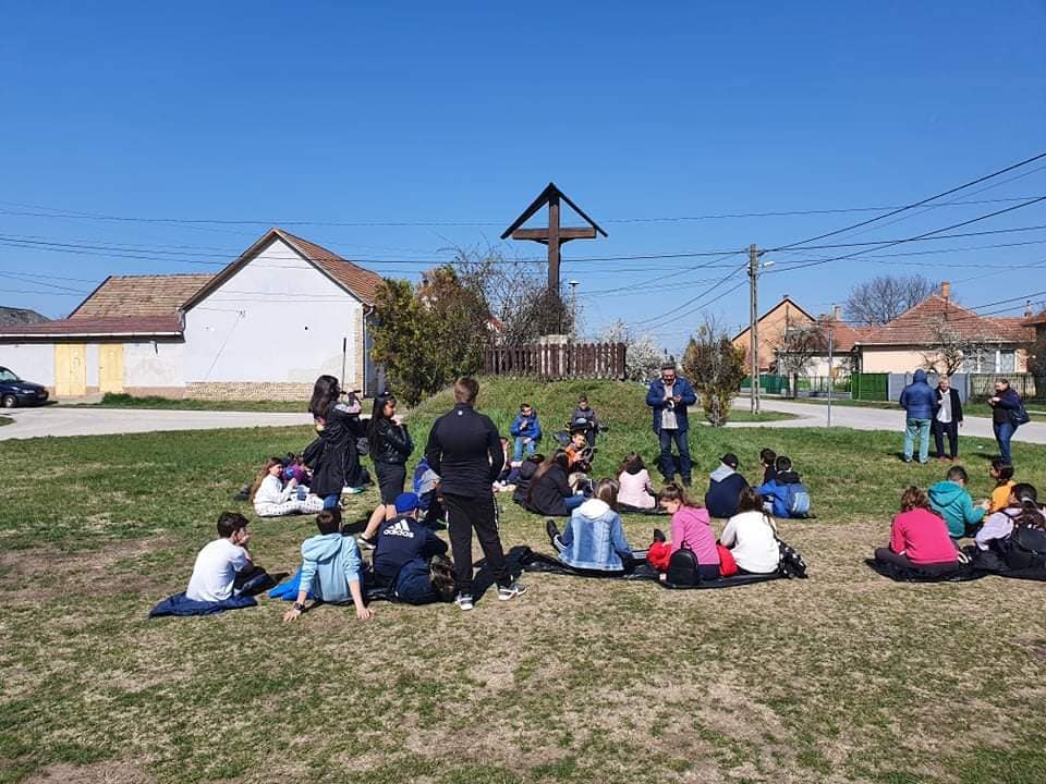 A reggeli szentmise után évfolyamok szerinti csoportban folytattuk a napot. Cél volt a testi, szellemi és lelki gazdagodás.A templom, a szabadtéri keresztek és a hozzá vezető út adta lehetőségeket használtuk fel. 1. helyszín: a templom történetének ismertetése után totó kitöltése és a ritkán látogatott könyvtár, kripta megtekintése /Köszönet dr. Farkas Kristóf Vince történész közreműködéséért/2. helyszín: Rózsa téri kereszt megtekintése és adott szavak felhasználásával vers alkotása 3. helyszín: a Lehel úti keresztnél ének tanulás 4. helyszín: a Kozma kereszt felkeresése, majd történetének ismertetése után szöveg kiegészítéseIstennek legyen hála a jókedvű gyerekekért és a napsütéses szép időért