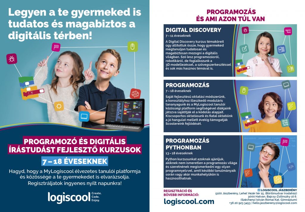 Kurzus jelentkezés: https://www.logiscool.com/hu/apply/jaszbereny/courses