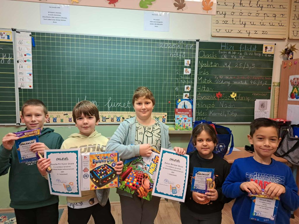 Novemberben zajlott az alsó tagozatosok matematika versenye. A feladatok összeállítását a tanító nénik végezték évfolyamonként. 2., 3. és 4. osztályos tanulók méretették meg magukat a számok és logika világában. Az 1. évfolyamon tanító pedagógusok az oklevelek, emléklapok elkészítésében és az ajándékok beszerzésében segédkeztek.