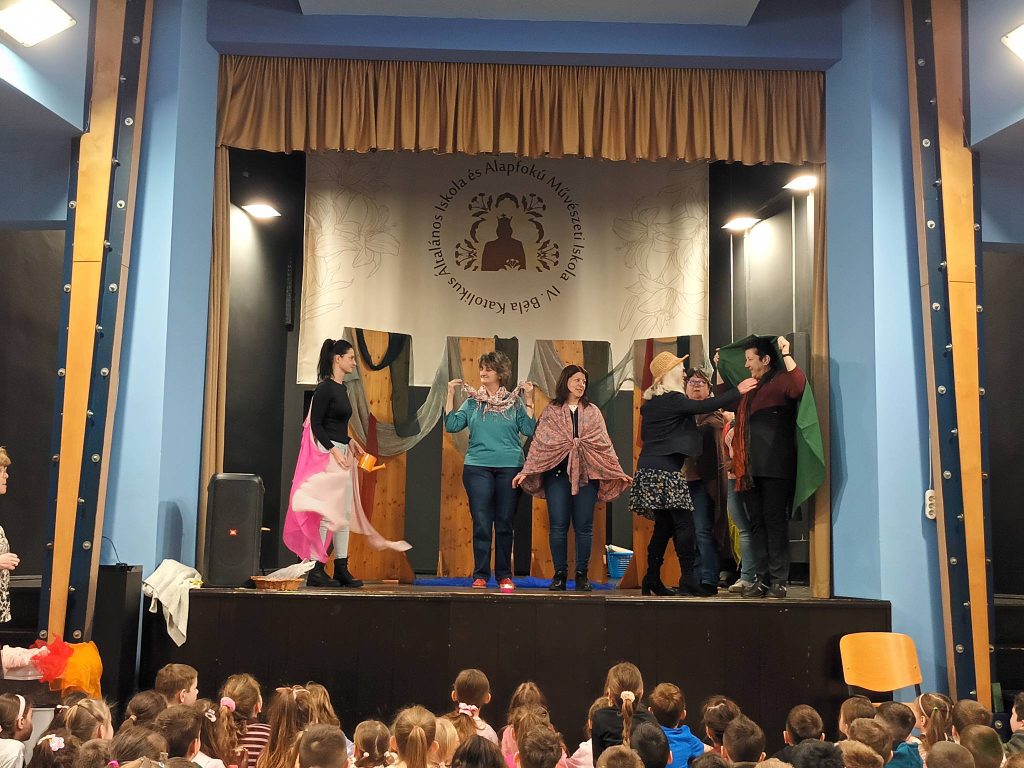A harmatszitáló pillangó tanulságos meséjét adták elő a pedagógusok néhány tanuló bevonásával.