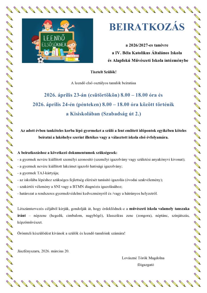 Az egri EKKE Gyakorló Általános Iskola, általános iskolásoknak „Anya csak egy van” címmel meghirdetett XV. Országos Vizuális Versenyén a Jászfényszarui IV. Béla Katolikus Ált. Isk. és Alapfokú Művészeti Iskola, Boldogi Képzőművészeti Tanszak tanulói is részt vettek. A Boldogi pályázók közül 3 tanuló jutott a döntőbe, Bátori Dorka 4. o., Matuska Ábel 6.b és Nagy Bence 8. a osztályos tanuló. Egerben 2026. febr. 17-én volt a döntő rajzverseny, négy órán át lehetett dolgozni. Nagy Bence a 7-8. osztályosok kategóriájában, I. helyet érdemelte színvonalas munkáival. A versenyen jól kombinálta az adott feladat elemeit a természetszobrászati faalak szívet formáló faágaival. Az ünnepélyes kiállításmegnyitó és eredményhirdetés márc. 11-én volt az Eszterházy Károly Katolikus Egyetem Főépületének – Líceum – földszinti aulájában.