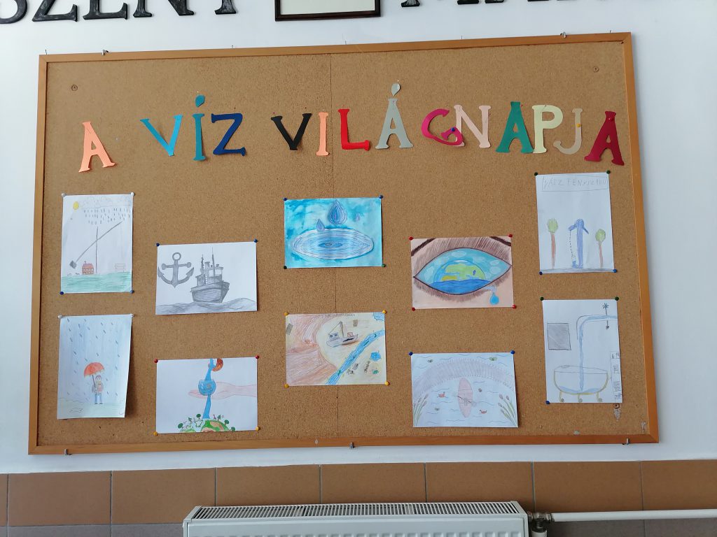 2022. március 22-én reggel az iskolarádióban tartottunk egy rövid megemlékezést, majd megnyitottuk a gyermekek által rajz és technika órákon készített munkákból az iskola előterében lévő kiállítást az adott témához. A rajzos munkákat Maldrik Gáborral, a technikai munkákat pedig Tóth Sándornéval készítették a tanulók. A víz fontosságára hívtuk fel a figyelmet földrajz, kémia és biológia órákon is. Az említett tantárgyakból a szakos tanárok, Palotainé Jánosi Krisztina, Mészárosné Dobák Ildikó, Tóth Sándorné, totókat állítottak össze, amiket a gyerekek kitöltöttek, megfelelő kutató munka után. A legsikeresebb tanulók jutalomban részesültek. Nagyon sok gyermeket sikerült így megmozgatnunk és a játékos totókkal a figyelmüket felhívni, az ismereteiket bővíteni.
