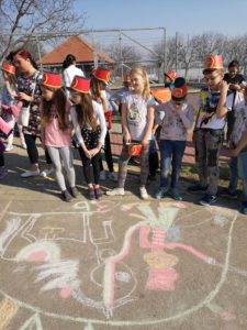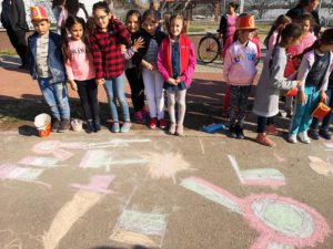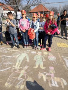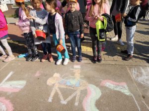 Verőfényes napsütésben vidám gyerekek rajzoltak a Tavaszi Emlékhadjárat alkalmából.