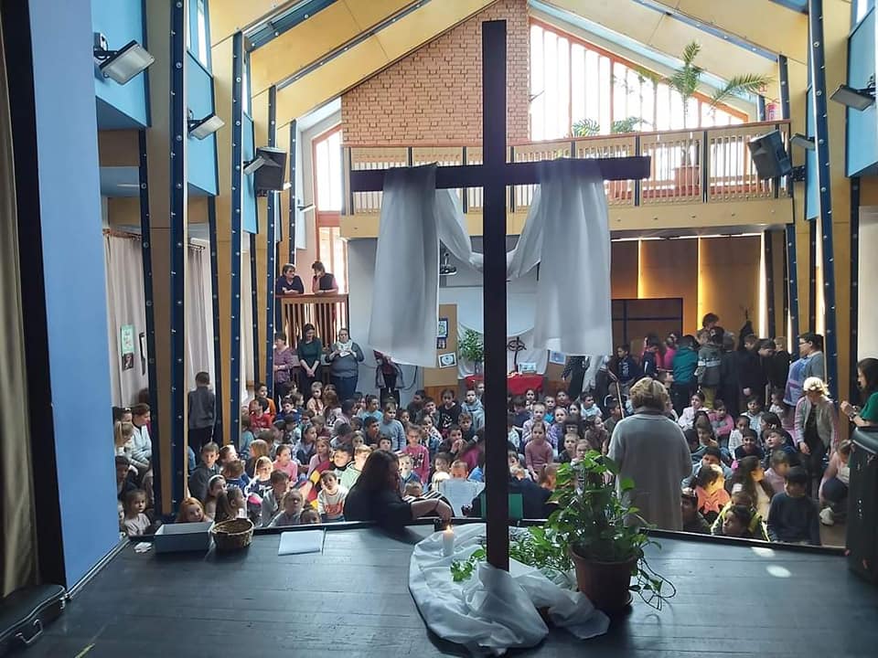 Kézműveskedés, feltámadás-énekek, pászka kóstolás, keresztút megtekintése