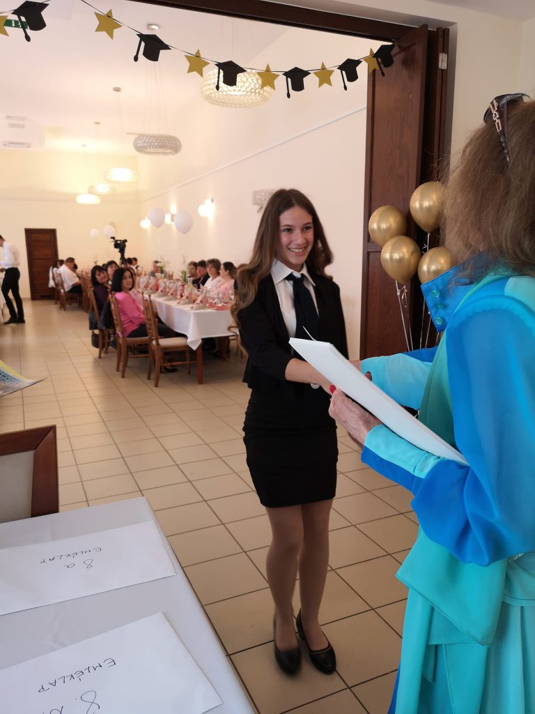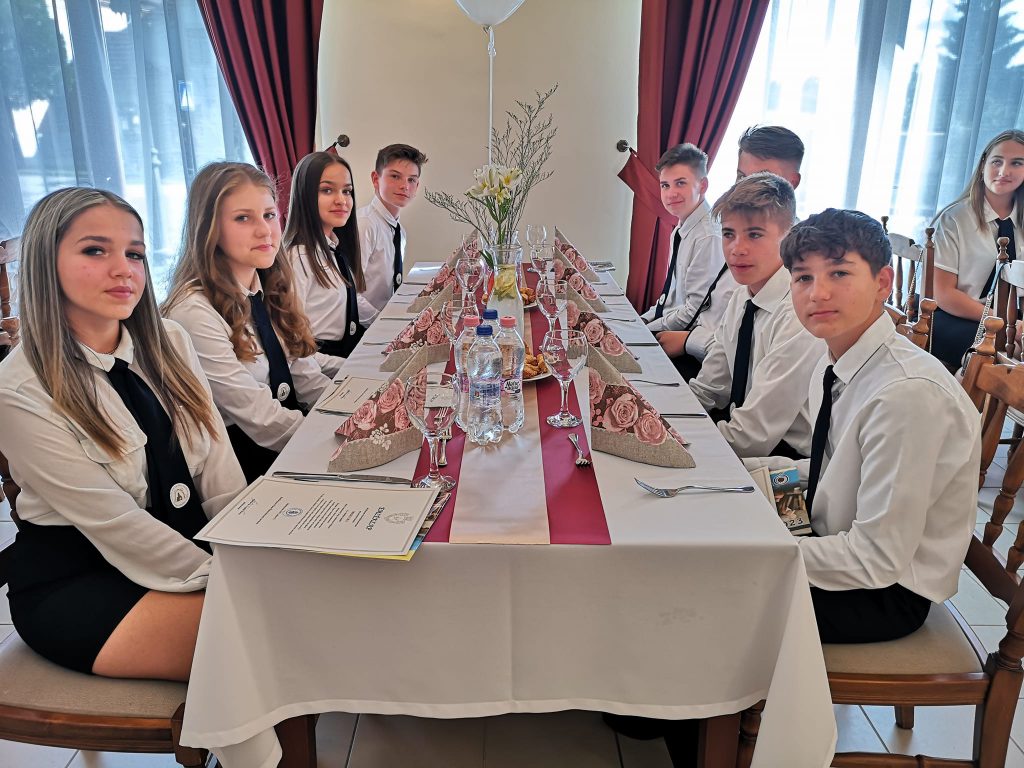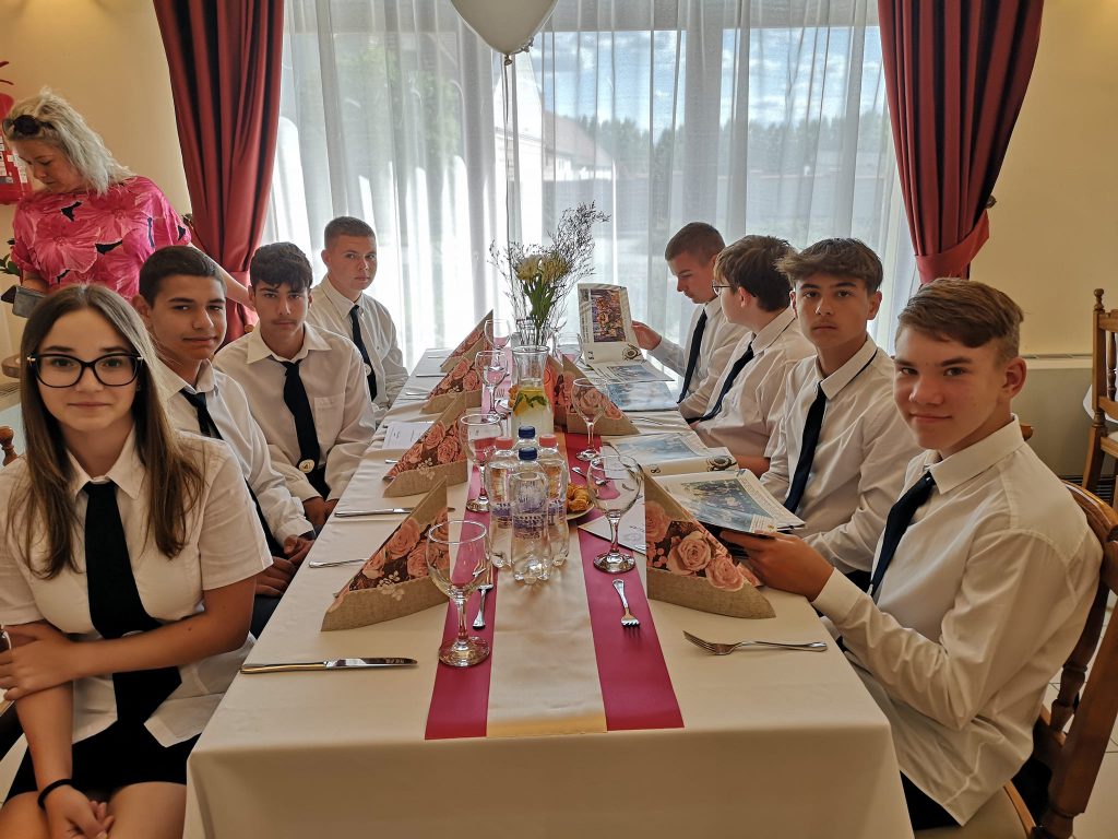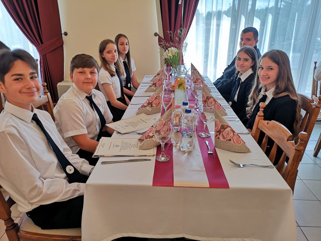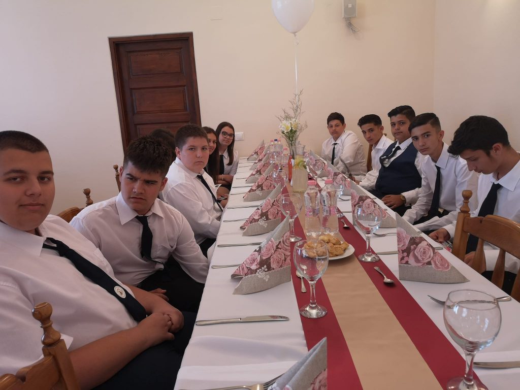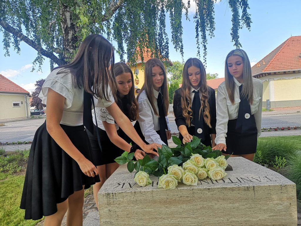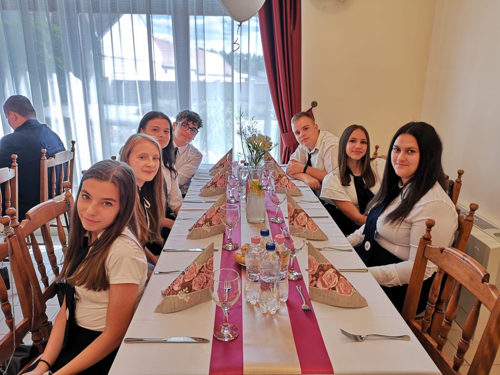 Polgármesterasszony meghívására az étterembe gyülekeztek a végzős tanulók, ahol az önkormányzat ajándékaként emléklapot és a Néplap különszámát, az Osztálynaplót vehették át a diákok Győriné dr. Czeglédi Mártától és jegyző asszonytól, dr. Voller Erikától.Az idei tanév díjazott diákjai előadásukkal köszöntötték nyolcadikos társaikat.A csoport fényképezkedés után a Tanítók emlékművére virágot helyeztek a jelen és jövő tanév diákpolgármesterei és helyetteseik.A pezsgős koccintás után finom vacsora és sütemény várta a megjelenteket.Köszönet a megtisztelő meghívásért és a kedves fogadtatásért!