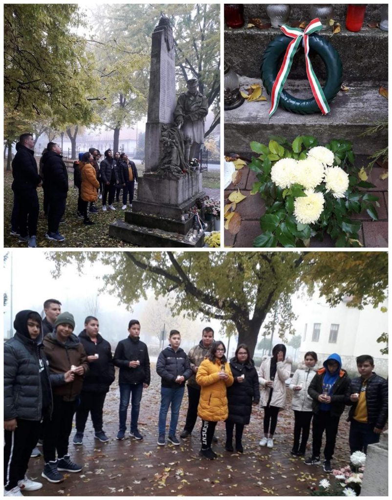 Iskolánk 7.osztályos tanulói a hagyományokhoz híven halottak napján megkoszorúzták a Szent Család téren lévő I. Világháborús Emlékművet és gyertyát gyújtottak a hősök emlékére.