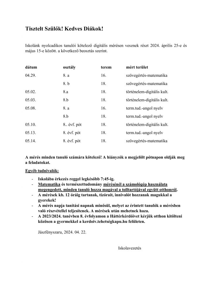 Április 11-én az első órában a Kisiskola színháztermében gyűltünk össze, hogy megünnepeljük a Magyar Költészet Napját. A helyi versmondó versenyre készülő tanulók egy kis rutint szerezhettek és megörvendeztették társaikat az általuk tanult versekkel. Az egyéni produkciók után az osztályok is elszavaltak egy egy idén tanult verset. A negyedik évfolyamon osztályszinten mutatkoztak be a versmondó versenyre készülők és közös szavalással is megemlékeztek József Attila születésnapjáról.