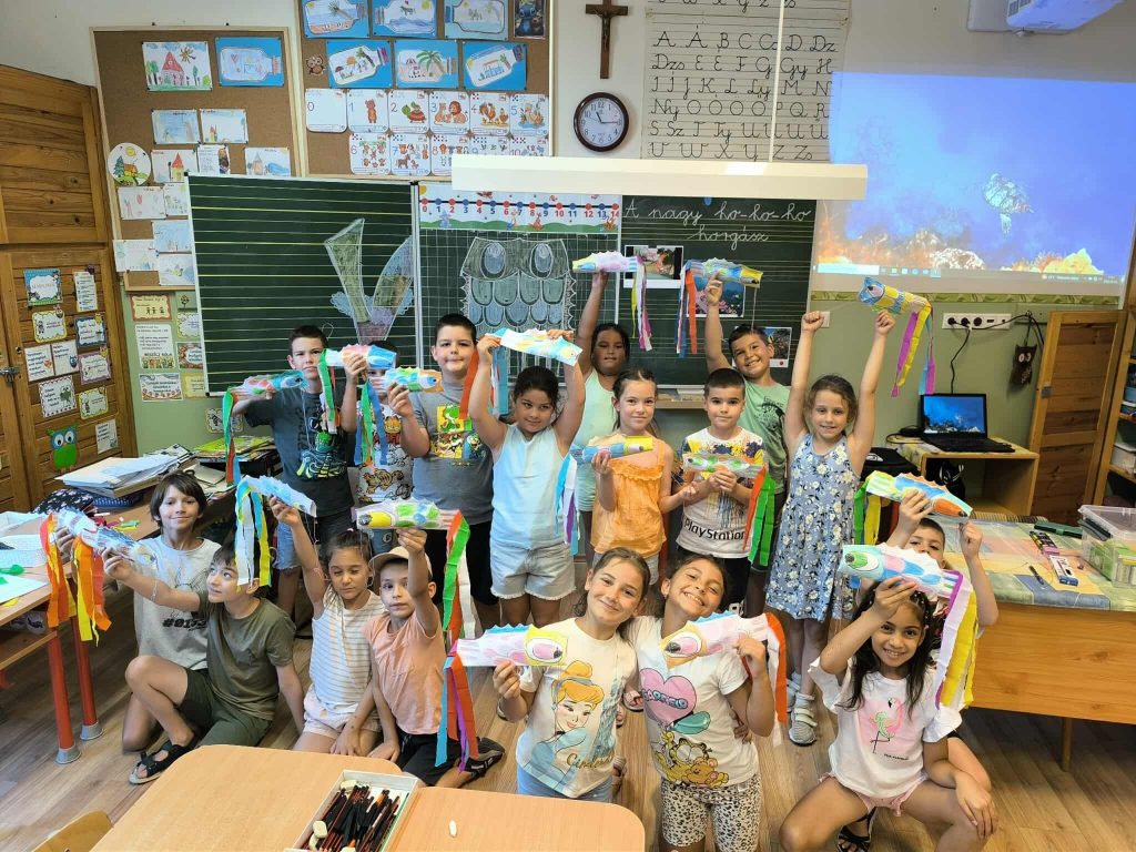 Június 30 – július 4-ig tartott a IV. Béla Katolikus Általános Iskola és AMI alsós napközis tábora, amelyben közel 80 tanuló vett részt. A tábor programjainak keretében Csukás István munkásságát szerettük volna megismertetni a gyerekekkel.Ízelítő a programokból: mesenézés, drámajáték, bábkészítés, könyvtárlátogatás, Pom-pom készítés, dekorgumiból mesefigurák alkotása, mozgásos játékok, uszoda, horgászverseny, tetkózás, tornazsák díszítés textilfilccel, gyurmázás, Tűzoltó Egyesület Jászfényszaru bemutatója, festés, fagyizás, pizzázas. Szerdán kirándulni vittük el a gyerekeket Budapestre a Vajdahunyad várába, ahol múzeumpedagógiai foglalkozáson vettek részt, amit játszóterezés és fagyizás követett. Hazafelé pedig McDonald’s-ban ebédeltünk meg.Nagyon tartalmas öt nap van mögöttünk, amit a fotók is igazolnak. Köszönjük szépen az édesség, a gyümölcs, a zöldség, a lekvár és nassolnivaló felajánlásokat a szülőknek!Szeretném megköszönni a Petőfi Sándor Művelődési Ház és Könyvtár Jászfényszaru könyvtárosainak a tartalmas programot, a Tűzoltó Egyesület és a városi uszoda munkatársainak pedig a segítő munkájukat! Itt szeretném megköszönni Jászfényszaru város Önkormányzatának az anyagi támogatást, amely nélkül a tábor nem valósulhatott volna meg. A legnagyobb köszönet pedig a táborban résztvevő pedagógusoknak jár, akik egész héten azon fáradoztak, hogy a gyerekek nagyon jól érezzék magukat