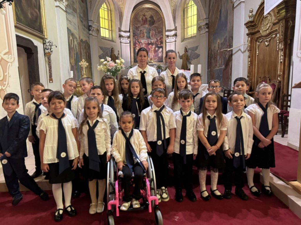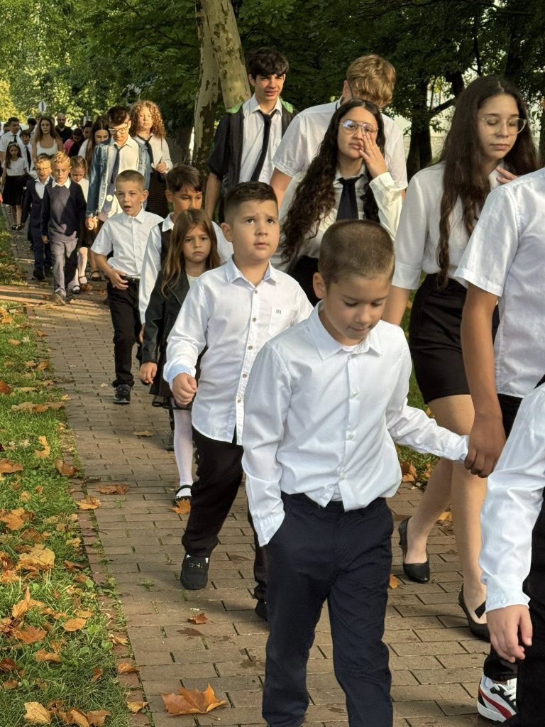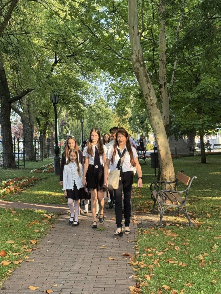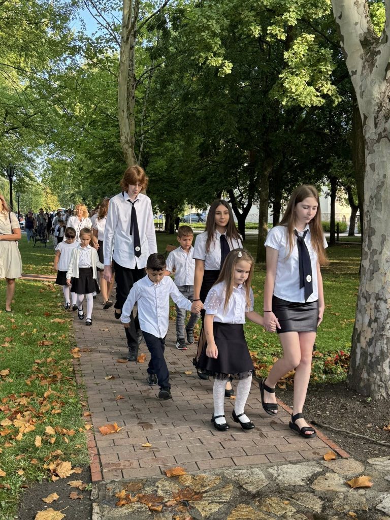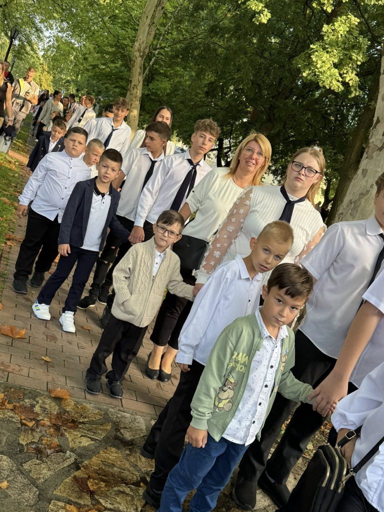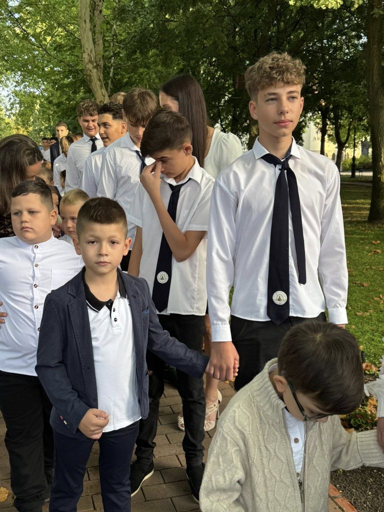 Hagyomány iskolánkban, hogy a végzős nyolcadikos diákok kézenfogva kísérik a legkisebbeket a tanévnyitóra. Megható tapasztalni, hogy az aranyos kis elsősek milyen szép fiatalokká cseperednek 8 év múlva